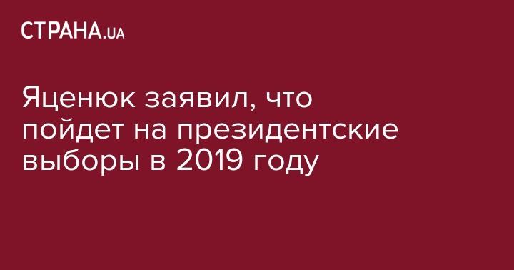 Экс-премьер министр и глава партии "Народный фронт" Арсений Яценюк заявил, что его партия пойдет на президентские и парламентские выборы в 2019 году. Об этом Яценюк сообщил выступая с трибуны в Мыстецьком Арсенале на съезде партии.