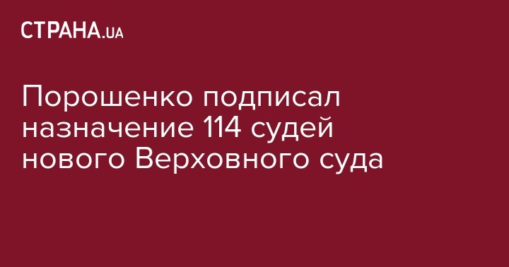 Президент Украины Петр Порошенко подписал Указ о назначении 114 судей нового Верховного суда Украины. Об этом сообщает Укринформ.