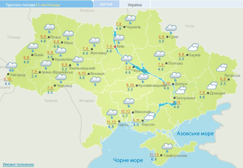 В воскресенье, 12 ноября, в Украине будет дождливым. Об этом сообщает Укргидрометцентр.