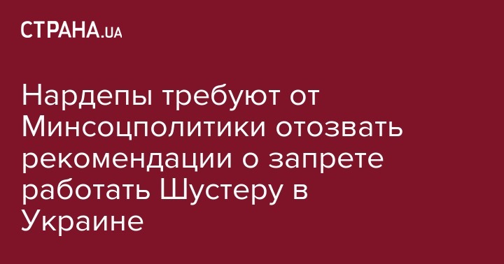 В Минсоцполитики подтвердили, что они обратились с рекомендацией лишить Савика Шустера права работать в Украине, передает 112.ua