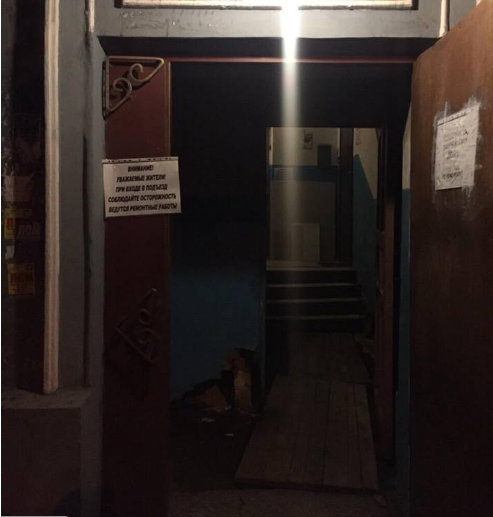Спасатели закрыли яму досками. При этом жильцы восьми квартир пока перебрались к родственникам, поскольку находиться в подъезде опасно.