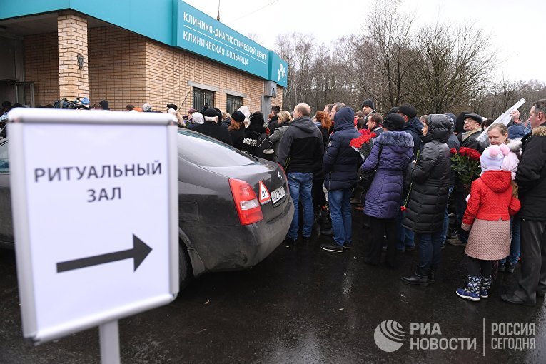 Изначально церемония прощания с Задорновым планировалась в закрытом режиме, поэтому людям пришлось полтора часа ждать за территорией больницы.
