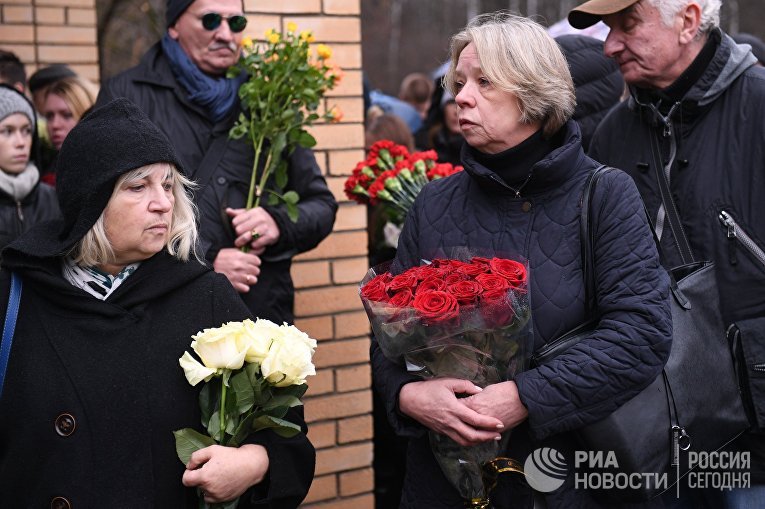 Прощание проходит в одной из Подмосковных клиник. Проститься с сатириком пришли родные и близкие, а также поклонники. Возле клиники собралось около сотни человек.
