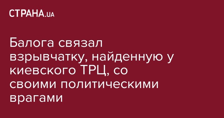 Балога связал взрывчатку, найденную у киевского ТРЦ, со своими политическими врагами
