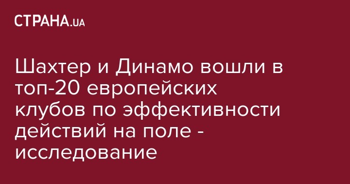 Шахтер и Динамо вошли в топ-20 европейских клубов по эффективности действий на поле - исследование