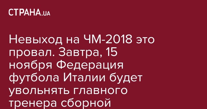 Невыход на ЧМ-2018 это провал. Завтра, 15 ноября Федерация футбола Италии будет увольнять главного тренера сборной