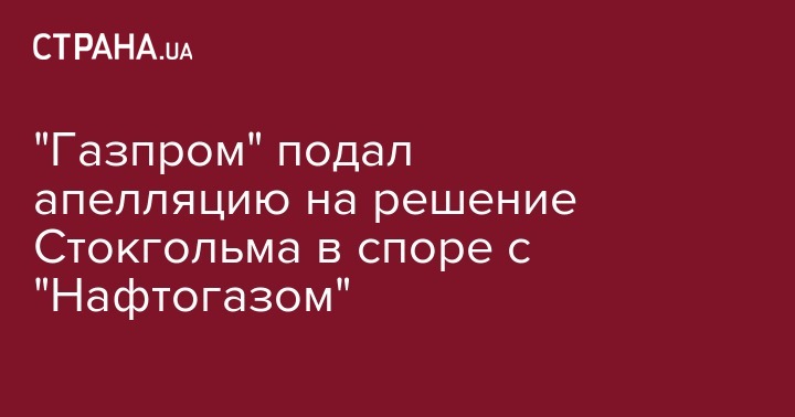"Газпром" подал апелляцию на решение Стокгольма в споре с "Нафтогазом"