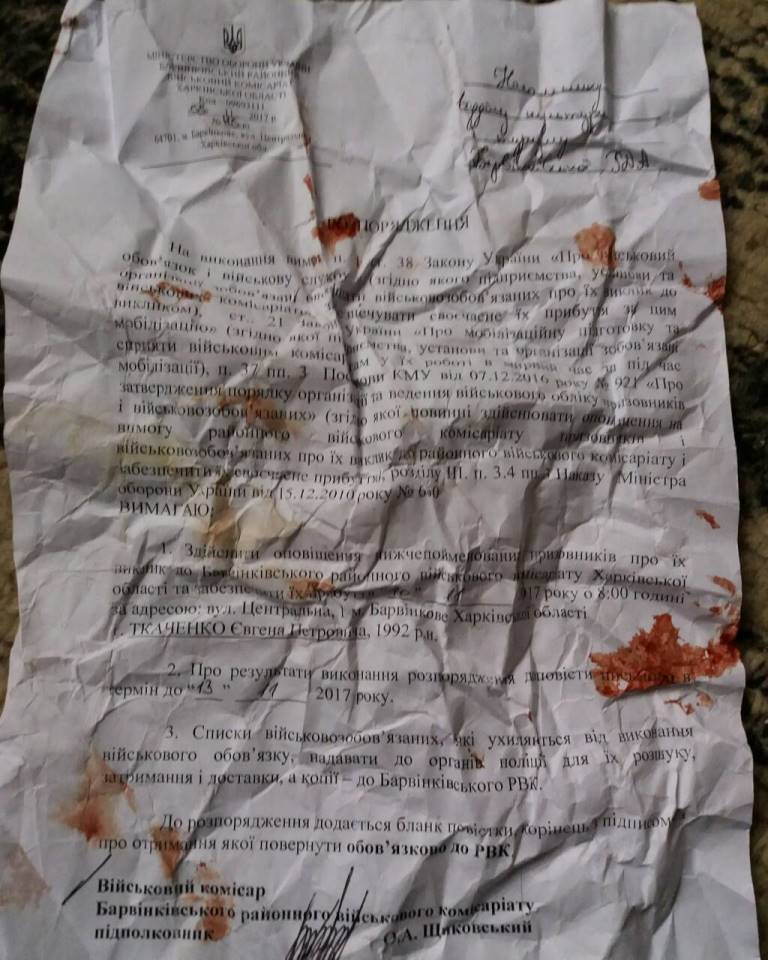 Сообщается, что было получено заявление и от военного комиссара Барвенковского районного военкомата Харьковской области Александра Щиковского.