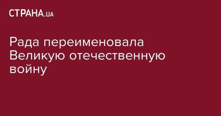 Верховная Рада внесла изменения в закон "О статусе ветеранов войны, гарантиях их социальной защиты" и переименовала "Великую отечественную войну" во "Вторую мировую войну". Об этом сообщается на сайте парламента.
