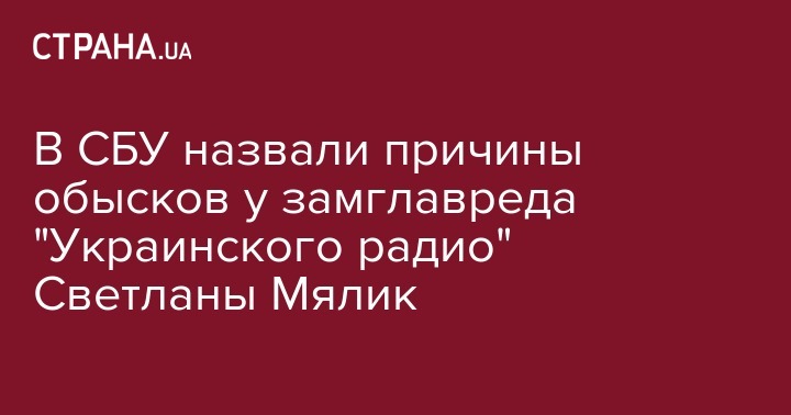 Пресс-секретарь СБУ Елена Гитлянская заявила, что обыск у заместителя главного редактора "Украинского радио" Светланы Мялик не связан с ее профессиональной деятельностью. Об этом Гитлянская написала в комментарии к записи Мялик в Facebook.