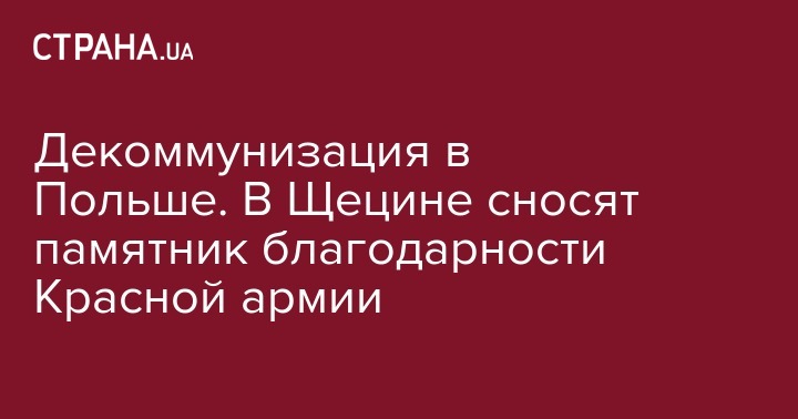 В центре города Щецин начали демонтаж памятника благодарности Красной армии. Об этом в среду, 15 ноября, сообщает РИА Новости со ссылкой на польские СМИ.