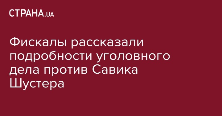 ГФС сообщает, что следственным управлением финансовых расследований главного управления ведомства в Киеве расследуется уголовное производство по факту умышленного уклонения от уплаты налогов в отношении гражданина Канады Савика Шустера и в отношении должностных лиц ООО "Савик Шустер Студия".