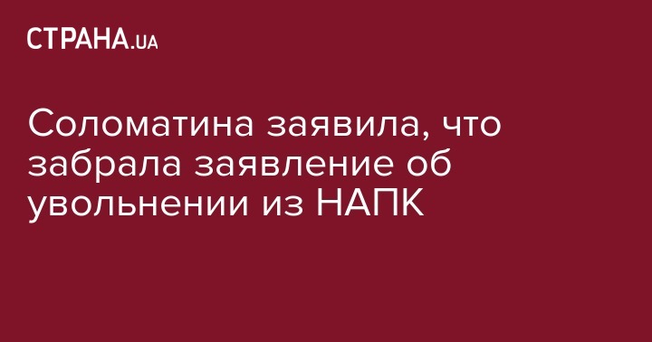 В комментарии журналистам Соломатина подчеркнула, что заявление об увольнении по соглашению сторон отозвала, передает УНИАН.