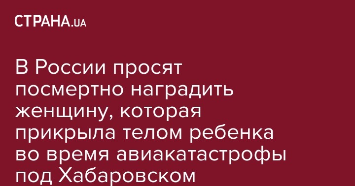 В России просят посмертно наградить женщину, которая прикрыла телом ребенка во время авиакатастрофы под Хабаровском
