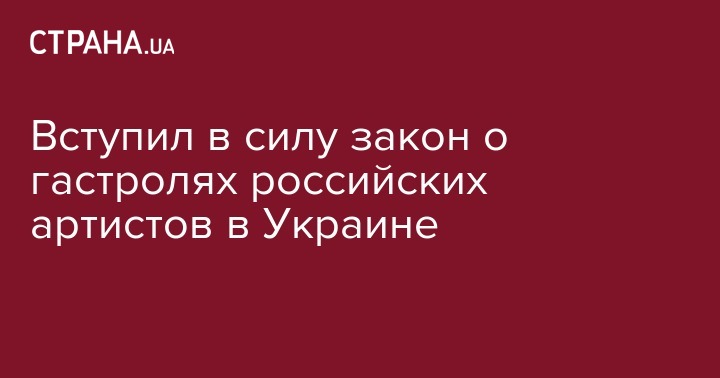 В четверг, 16 ноября, вступил в силу закон, запрещающий в Украине гастроли российских артистов, которые создают угрозу нацбезопасности. Об этом сообщают РИА Новости.
