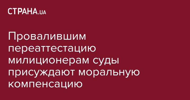 Милиционерам, которые не стали полицейскими из-за провала переаттестации, выдают деньги в виде моральной компенсации. Как написал на своей странице в Facebook активист, член комиссии по переаттестации в МВД Евгений Голубенко, на днях Киевский окружной админсуд присудил 5 тыс. грн моральной компенсации столичному оперуполномоченному, который в феврале был уволен аттестационной комиссией.