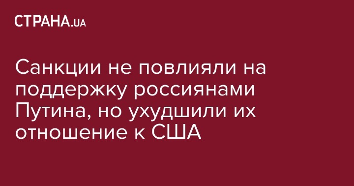 Антироссийские санкции Вашингтона не повлияли на уровень поддержки россиянами президента Владимира Путина, но привели к тому, что мнение граждан России о США ухудшилось.