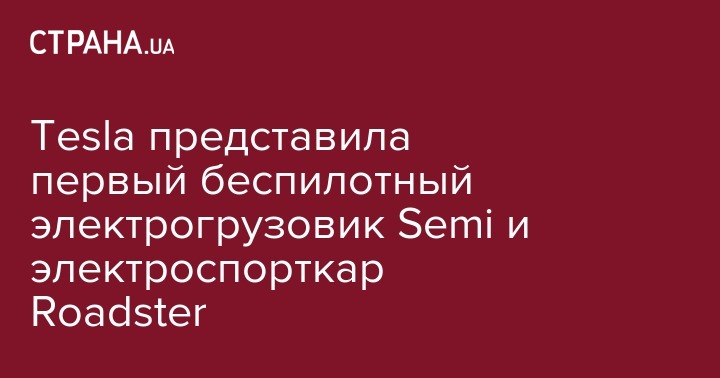 Компания Tesla представила свой первый беспилотный электрический грузовик - седельный тягач Semi. А также прототип нового поколения Tesla Roadster. Об этом сообщает N+1.