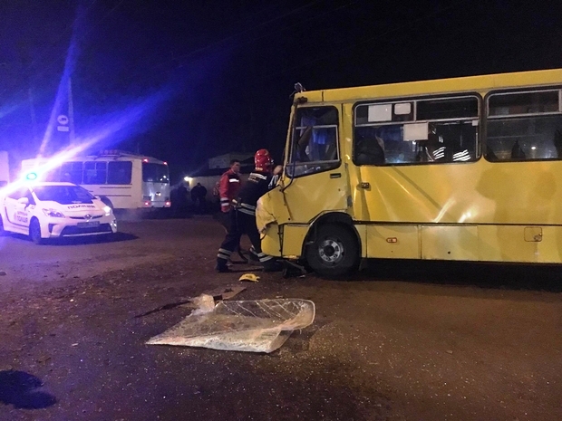 В Черкассах маршрутка врезалась в грузовик. Пострадали 8 пассажиров и водитель