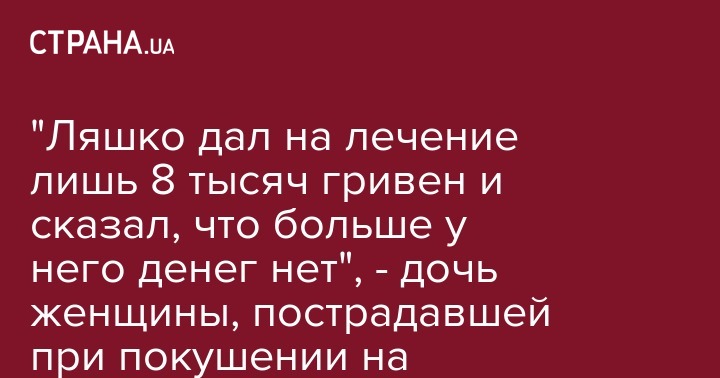 "Потом обиженный звонил мне, потому что я сказала, что этой суммы хватило только на два дня лечения. Сказал, что у него больше нет денег. Также звонил помощник Мосийчука, спрашивал нужна ли нам помощь, но после утвердительного ответа больше не перезванивал" , - сказала дочь пострадавшей.