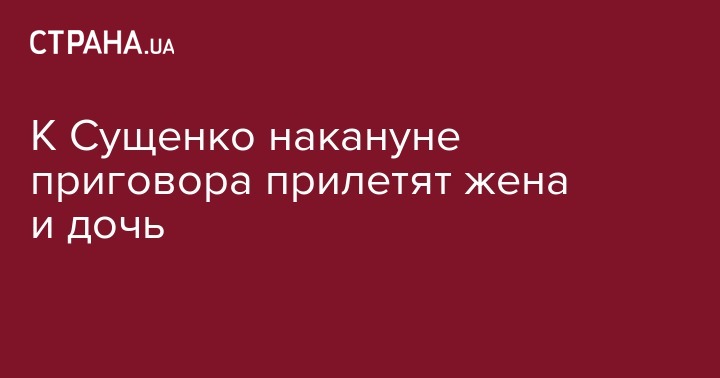 Завтра, 20 ноября, к украинскому журналисту Роману Сущенко прилетят на свидание жена с дочерью. Об этом сообщает защитник Марк Фейгин на своей странице в Twitter.