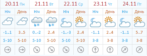 Сайт Укргидрометцентра обещает пасмурный понедельник, дождь со снегом во вторник, а затем переменную облачность до выходных. Днем обещают +2...+4, ночью +1...-3.