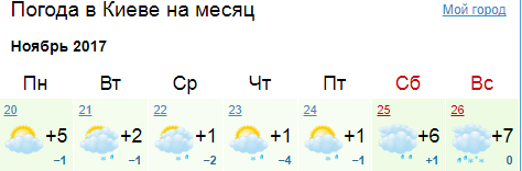 "Страна" продолжает проект "Битва синоптиков" очередным прогнозом погоды на неделю в Киеве. Мы собрали данные с 20 по 27 ноября от пяти ведущих метеосайтов страны. В конце недели мы сравним прогнозы с тем, что происходило на самом деле, чтобы назвать самый точный и самый недостоверный из них.