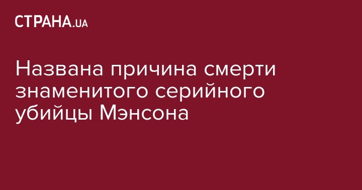 Стала известна причина смерти американского серийного убийцы Чарльза Мэнсона, который умер 19 ноября. Об этом сообщает TMZ.