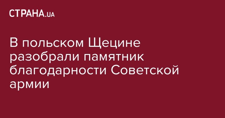 Ранее "Страна" сообщала о декоммунизации в Польше. В Щецине сносят памятник благодарности Красной армии.