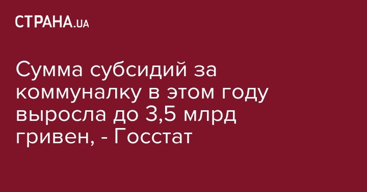 Сумма субсидий за коммуналку в этом году выросла до 3,5 млрд гривен, - Госстат
