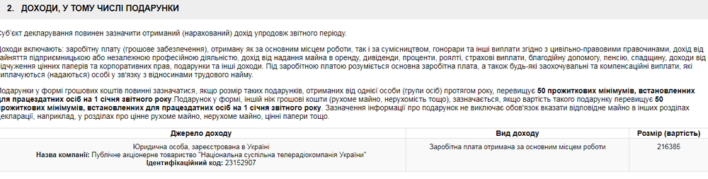 В изменениях о доходах от 20 ноября у Аласании указана зарплата – 216 385 гривен.