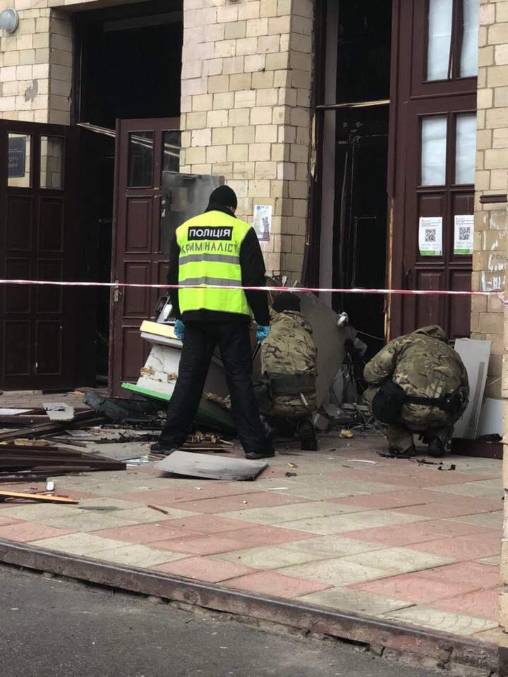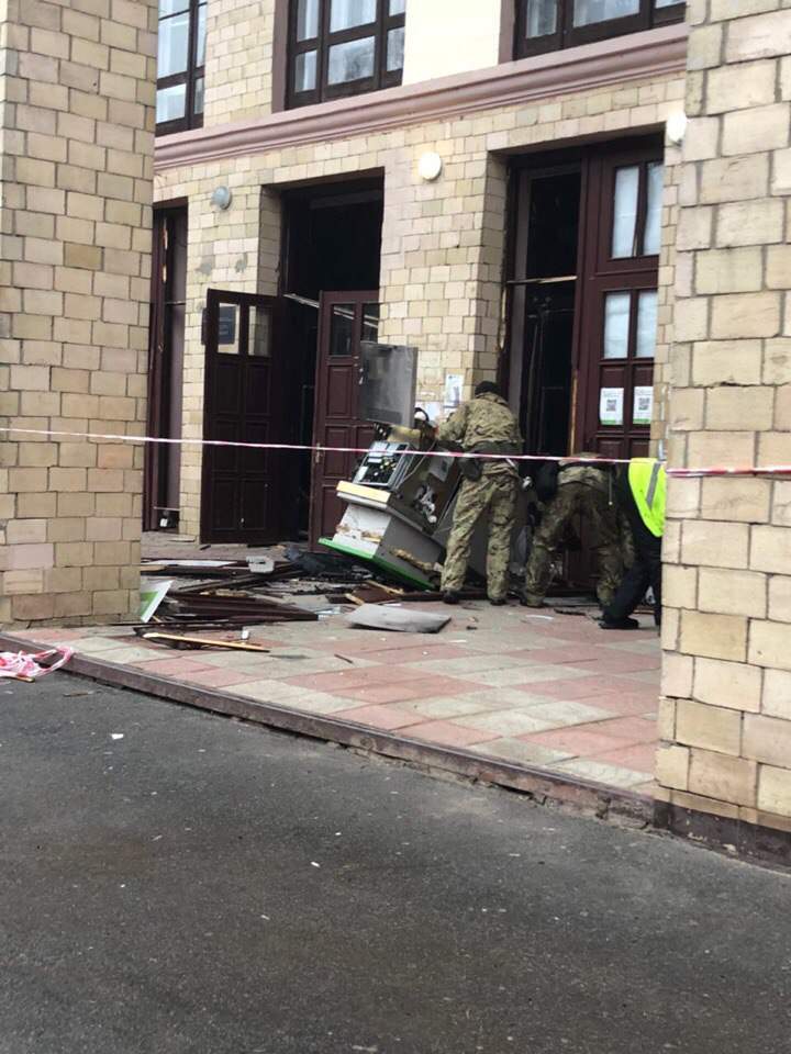 Предварительно, на входе в академию был взорван банкомат "Приватбанка".