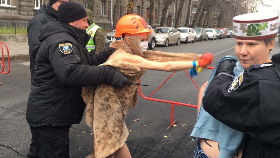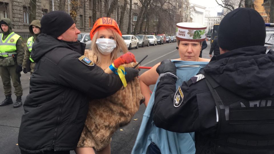 Участницы движения Femen устроили очередную "голую" акцию, приуроченную ко Дню Достоинства и Свободы, который отмечается 21 ноября в годовщину начала Евромайдана. Об этом передает корреспондент "Страны".