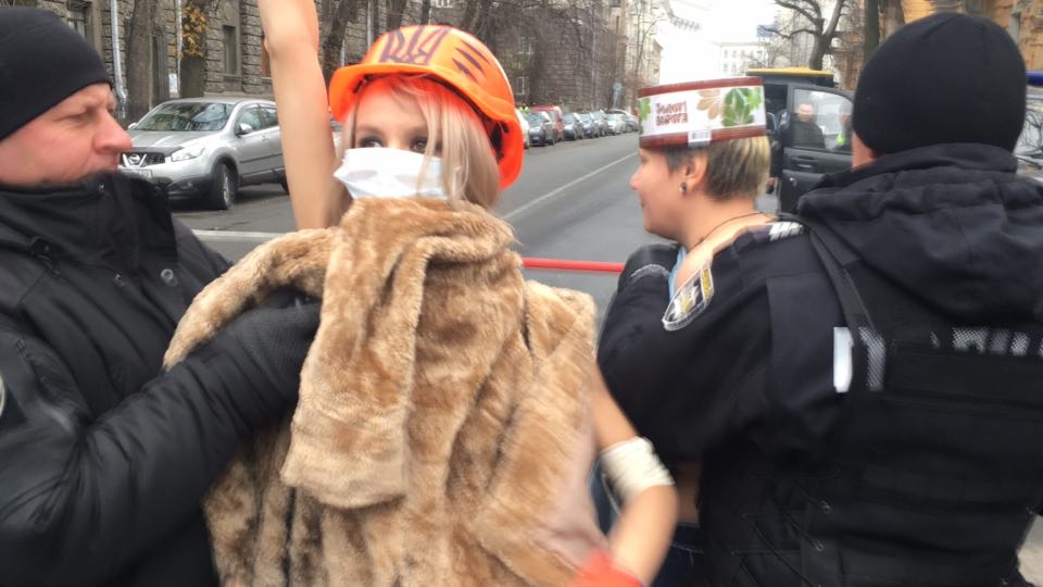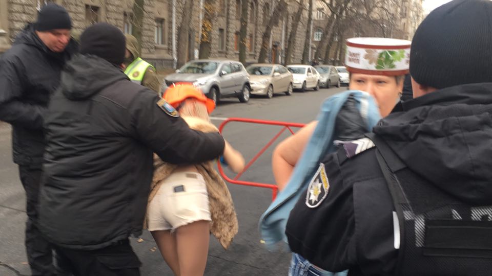 Акция длилась не более минуты, девушек очень быстро задержали силовики.