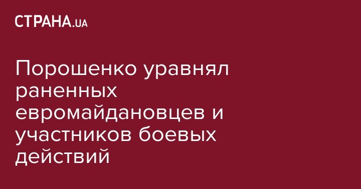 "Тем, кто на баррикадах Майдана получил ранения или потерял здоровье, отныне предоставляется статус участника боевых действий. Сегодня подписал соответствующий закон, восстанавливающий справедливость", - написал Порошенко.