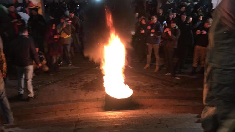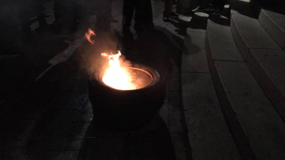 20:16  Митингующие подожгли шины.