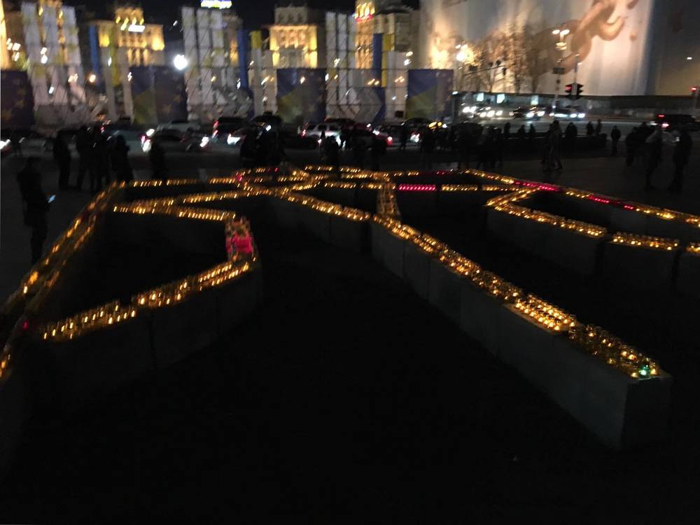 19:12  Зажгли герб Украины из свечей.