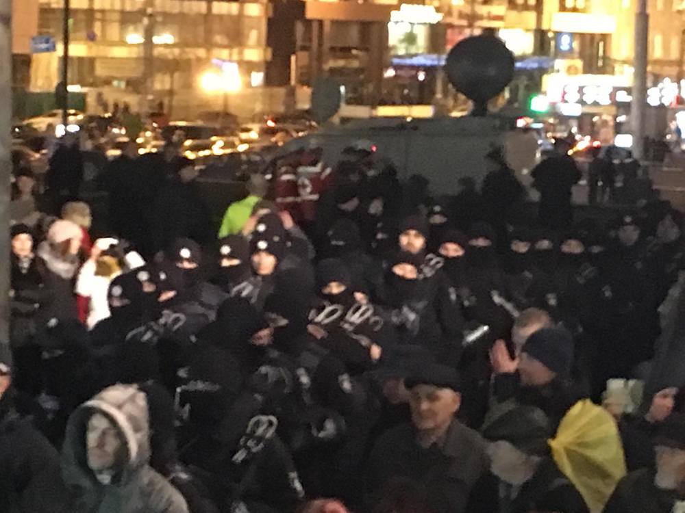 17:59  Полиция пытается протиснуться к палаткам и окружить стелу Независимости.