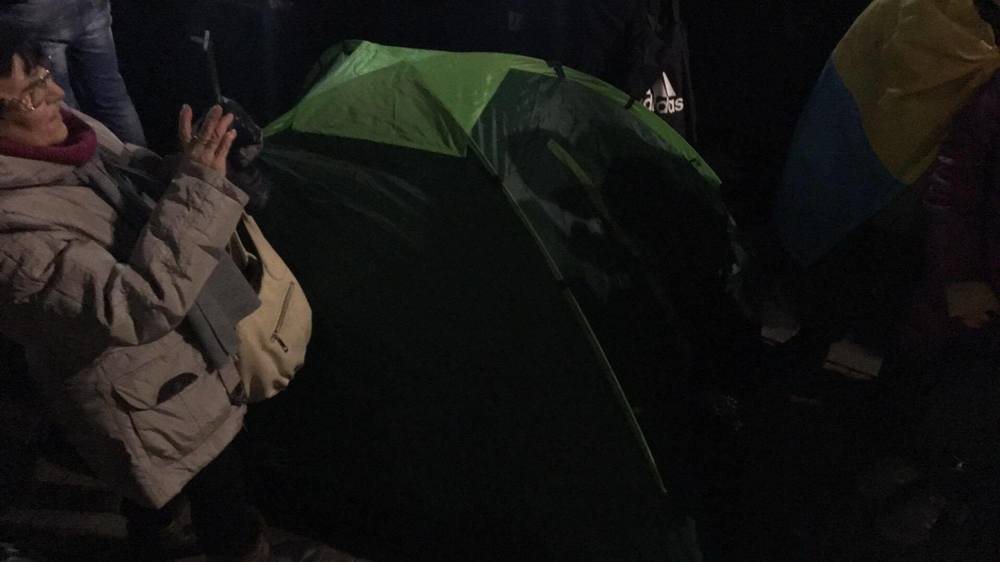 19:05  "Мы собирались остаться здесь до 29 ноября, но палаток у нас нет. Посмотрим", - говорят "Стране" активисты.