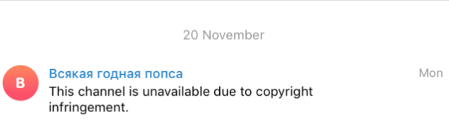 Поддержка Telegram не ответила на дополнительные вопросы, добавил Вагин. Он сказал vc.ru, что не получал предупреждений от сервиса. На момент написания заметки канал был заблокирован во всех версиях Telegram - для Android, Windows, macOS и iOS.