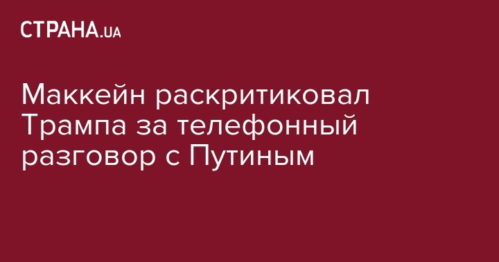 Американский сенатор Джон Маккейн раскритиковал президента США Дональда Трампа за телефонный разговор с президентом России Владимиром Путиным. Об этом Маккейн написал в Twitter.