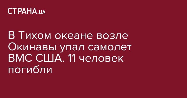 В Тихом океане упал самолет ВМС США с 11 людьми на борту. Об этом говорится в сообщении 7-го флота США.