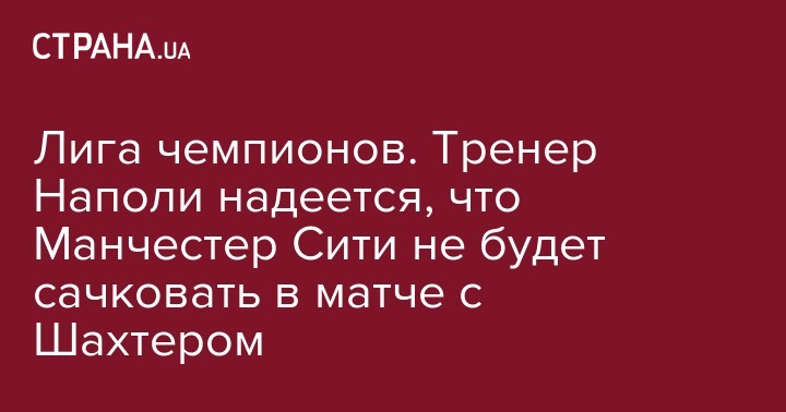 Главный тренер "Наполи" Маурицио Сарри на послематчевой пресс-конференции выразил надежду, что "Манчестер Сити" в поединке с "горняками" будет играть в полную силу.