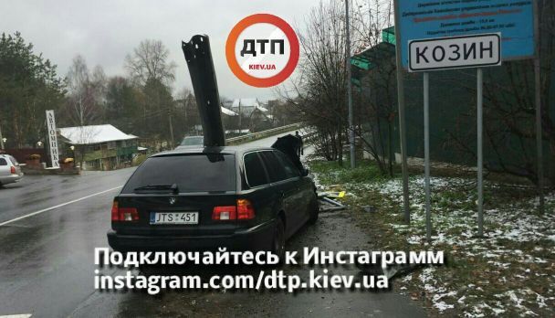 На въезде в поселок Козин Киевской области водитель BMW на литовских номерах на огромной  скорости влетел в отбойник. Об этом dtp.kiev.ua сообщает на своей странице в Facebook.