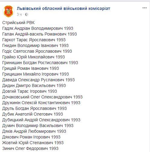 Списки выложены на странице военкомата в соцсети Facebook.