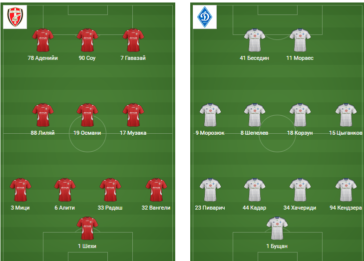 У киевлян довольно серьезные потери перед матчем. Главный ударный кулак команды Дьемерси Мбокани не выйдет на поле из-за травмы. У него боли в мышцах бедра. Также тренер решил поберечь Дениса Гармаша, а Домагой Вида получил небольшое повреждение на тренировке, и скорее всего тоже не выйдет сегодня на поле.