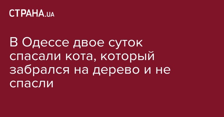 В Одессе двое суток спасали кота, который забрался на дерево и не спасли