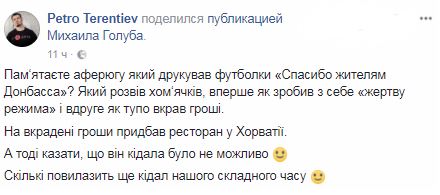 "Помните Олейникова? Он на украденные у доверчивых дурачков деньги открыл ресторан в Хорватии", – пишет Голуб.