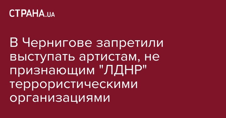В Чернигове запретили выступать артистам, публично поддерживающим агрессию РФ, оккупацию Крыма и не признающим "ЛДНР" террористическими организациями. Об этом сообщается на сайте Черниговского горсовета.