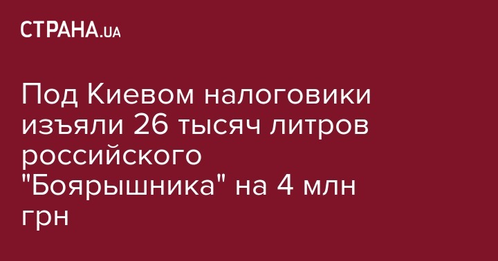 Под Киевом налоговики изъяли 26 тысяч литров российского "Боярышника" на 4 млн грн